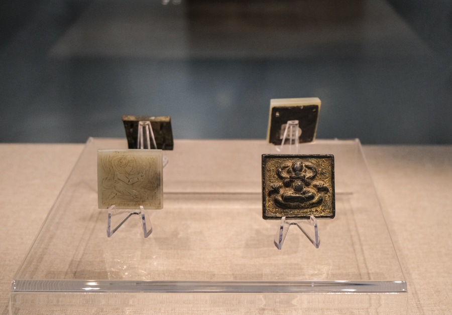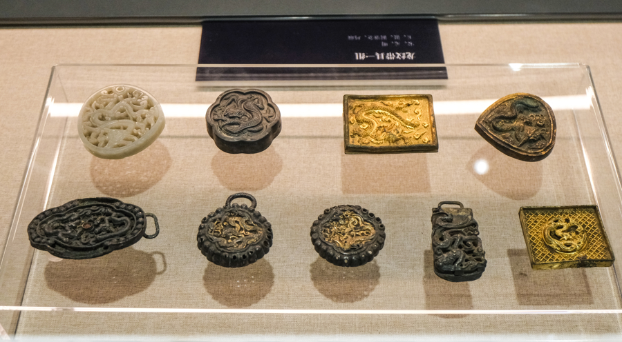展览现场,每一件带具都力求“开口说话”。从考古发掘情况看,唐代玉带的题材比较丰富,有龙纹、胡人乐舞纹、狮子纹、瑞雀纹等。五代带具在题材上深受唐代影响,以龙纹、伎乐、高士题材最多。龙纹作为中华民族的文化符号之一,承载着深厚的民族情感和精神寄托,它不仅是中华民族多元一体的象征,也是中华民族自强不息、勇于探索精神的体现。