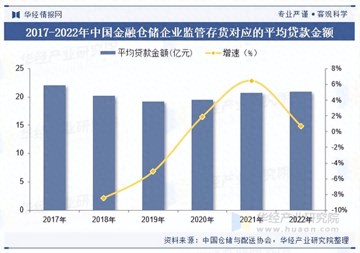 整体来看富邦配资,2022年我国涉及金融仓储业务的新注册企业约为3509家,呈现增长趋势。据金融仓储分会不完全统计,2022年金融仓储企业监管(监控)存货对应的平均贷款金额为20.93亿元,较上年增长0.72%。
